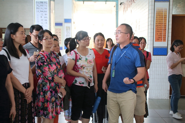 最后,老师们在田校长和赵校长的陪同下参观了我校的校园文化建设,学校的硬件设施和管理机制均给大家留下了深刻印象。