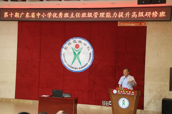 接着,全国优秀校长、著名教育专家刘俭国教授就“班主任发展工作的重要性”给全体班主任作简短汇报。在汇报中,刘教授提到了:一个优秀的班主任是富有激情,具有教育情怀的,要做到“以爱育爱,以心育心,以仁育人”。