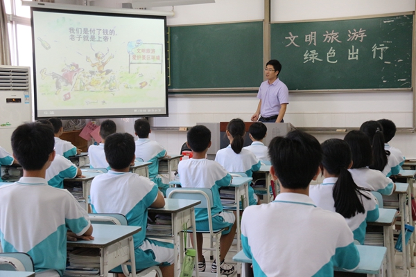 学校充分发挥舆论导向作用,利用国旗下讲话、宣传橱窗、校园网、主题班会等方式向学生宣传文明旅游知识。特别是在“文明旅游”主题班会活动中,各班通过提问、抢答、浏览不文明旅游现象的图片和视频等方式,向学生介绍了不文明旅游现象的具体表现和危害,帮助学生树立文明旅游的思想观念,提升我校学生的文明旅游素质。