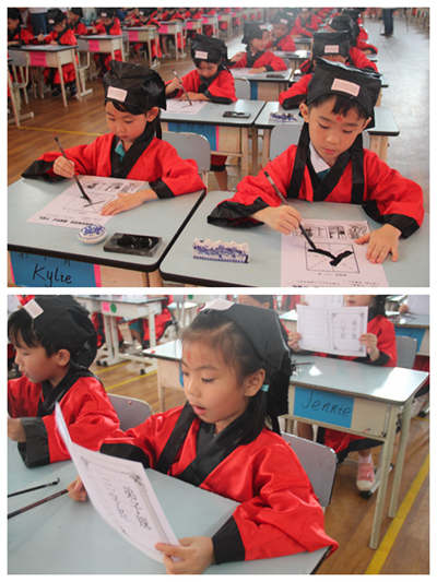 紧接着,在整齐的《弟子规》、《三字经》声中,圆满地结束了本次“开笔礼”仪式。