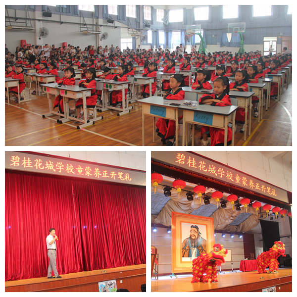 9月30日下午,碧桂花城学校在为一年级新生家长召开了《好家长成就好孩子》的讲座之后,还为一年级的新生举行了一场别开生面的开笔礼。