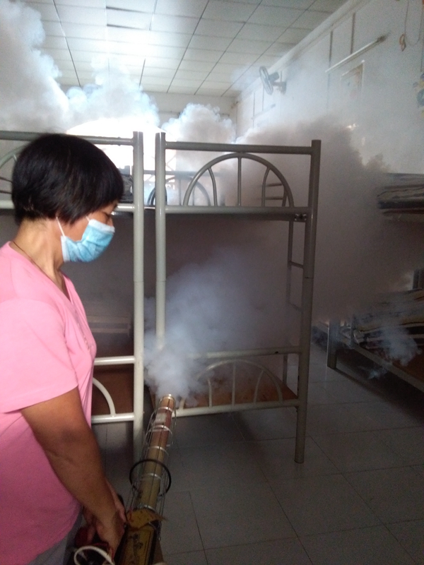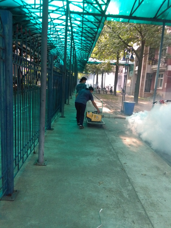 我校在清理孳生地,杀灭成蚊等各个环 节上都做了大量的工作。孳生地清理强调全方位展开。在各场室重点查处水养植物、花盆托盘等。每天傍晚我校都会在校园内有针对性地灭杀成蚊,有的放矢地进行灭蚊以及超低容量喷洒。国庆假期我们对整个校园进行了大面积的喷雾灭蚊活动。