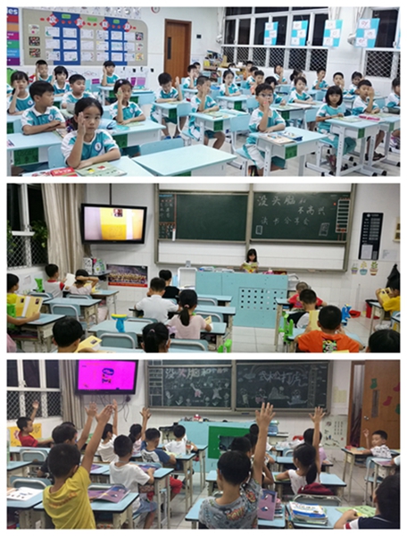 一(5)班开展的是以《我爱读书》为主题的读书汇报课。通过《我喜欢书》、《小魔怪要上学》、《图书馆老鼠》三本以“读书”为主题的绘本共读,让学生爱上读各种各样的书,在阅读中感受读书的快乐;让学生在“老鼠奇妙的图书馆之旅”中,感受阅读带给自己内心的愉悦和奇妙的变化,实现用故事引导学生在不知不觉中爱上图书,爱上阅读的目标。
