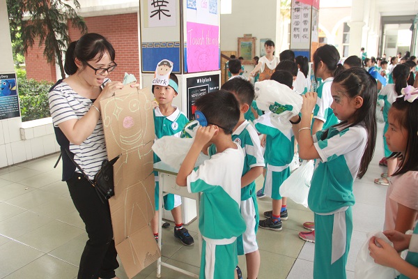 炎炎夏日抵挡不住本年级同学们的热情。长长的队伍里尽是引颈以待的眼神。每个同学都希望自己能在最快的时间里胜出游戏换取奖券,然后到购物摊位里“购买”喜爱的饮品和小吃。看!有的在“表演”高速连续跳绳、有的在大声朗读英语单词、有的在流利读出英语句子、有的在抓破脑袋猜字谜、有的在打保龄球。兴奋之余,同班同学或是互相呐喊助威、或是三两成群一起挑战字谜、或是将小吃分甘同味,友谊的小船看来坚不可摧。