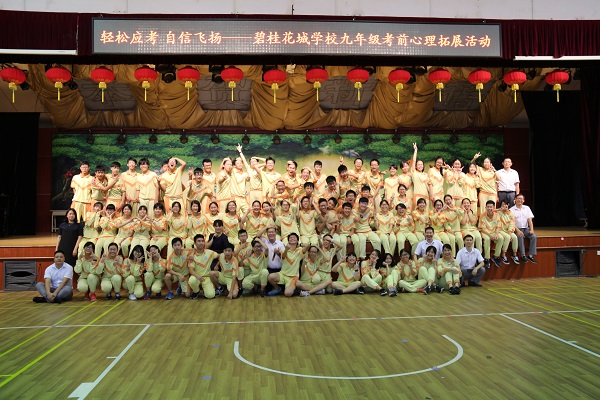 为了激励学生为理想奋斗的信心,提高战斗力,培养学生耐挫性,考前释放压力,放松心情,6月9日下午,九年级全体师生参加了在综合馆举行的考前心理拓展活动,活动由王展鹏级长主持。