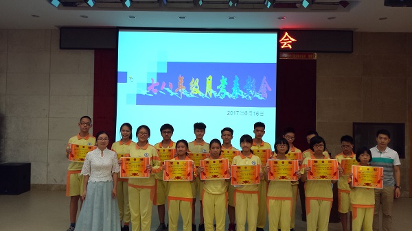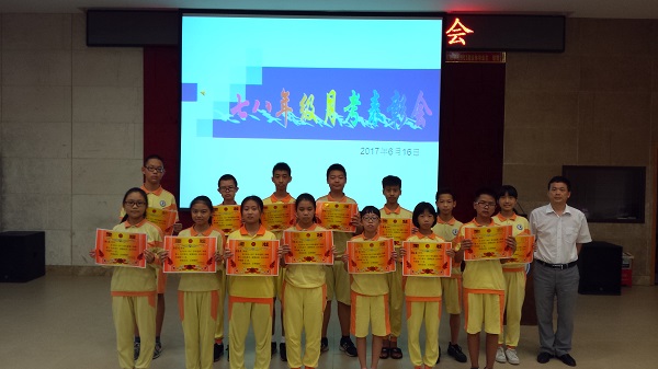 随后,郭主任和七八年级的老师为获奖的同学颁奖,并合影留念。