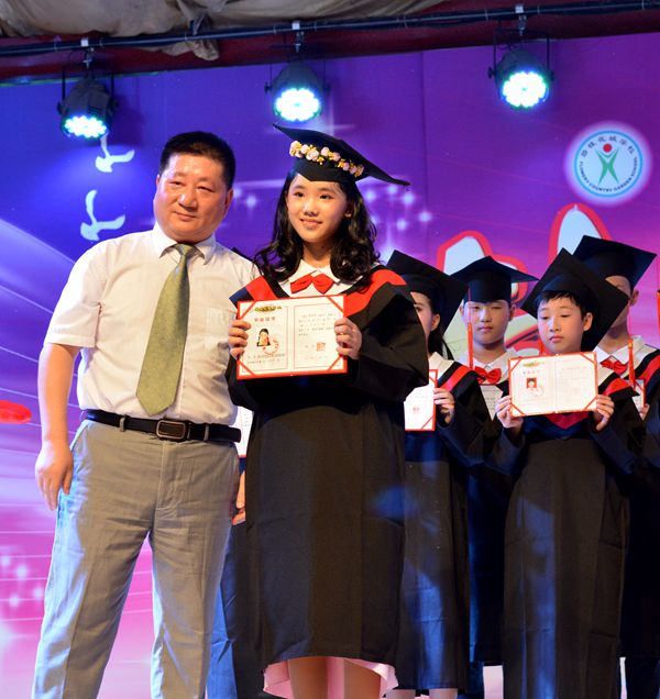 紧接着,每一个毕业生在主持人的隆重介绍下,依次走到舞台中央,接受贺校长、谭校长颁发的毕业证书,幸福洋溢在每个人的脸上。毕业生代表刘宸旭的深情讲话,让孩子们重温了小学六年来成长中的点点滴滴,表达了对母校的留恋,对恩师的感谢,对未来的希冀。