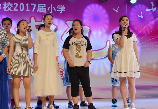 在活动接近尾声时,全体毕业生一齐合唱校歌《梦想花城》。此时,孩子们依依不舍地真情演绎把典礼的氛围推向了高潮。感恩的歌声在会场上空久久回荡。随着毕业典礼的落幕,同学们的小学生活也画上了圆满的句号。
