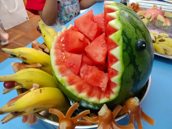 紧接着,在“我型我秀”活动结束后,我们进行了配合探究单元“动物”为主题的亲子活动。心灵手巧的家长们使出浑身解数,和宝贝们发挥无限的创意,用各种食物组合出了各种各样可爱的动物拼盘,有仰头高歌的海豚、四处爬行的螃蟹、瞪大眼睛的猫头鹰、畅游戏水的小鱼等等。无论是大朋友还是小朋友,都沉浸在这充满温馨有爱的氛围中。希望孩子们从这里出发,一步一步走向更大的舞台,老师会一直为你们喝彩!