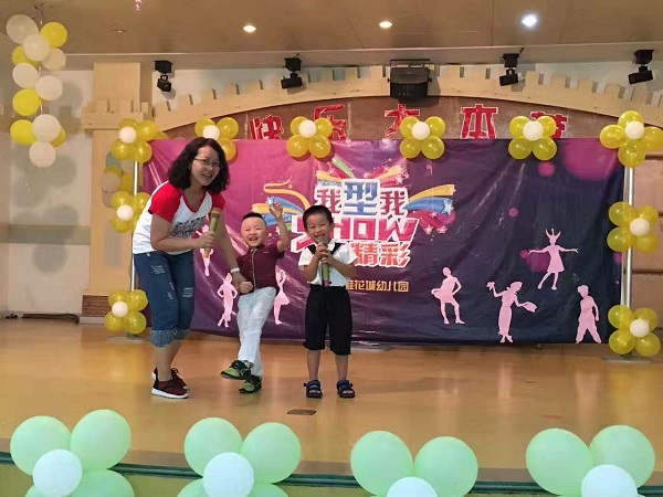 在一番紧张的准备之后,我们的表演正式开始了。首先给我们带来开场舞的是两位可爱的精灵舞者,Venna和Olga的《娃娃》舞引得台下阵阵掌声。《大头儿子小头爸爸》这熟悉的旋律在我们耳边响起,原来是Jack 和Ken两位小帅哥给我们带来的演唱。接下来两位可爱的小公子Hugo,Matthew用他们爽朗的声音给我们唱出《Yes,I can》