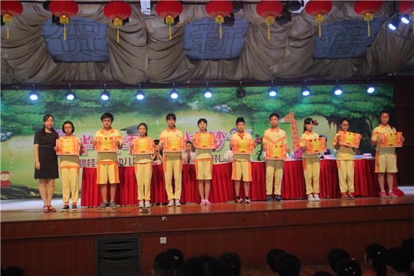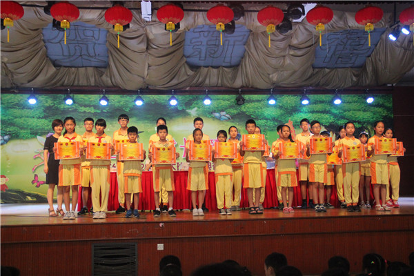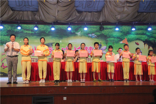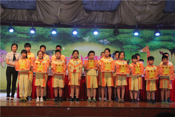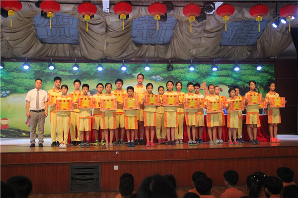 最后,由学校领导给本学期获奖的班级和学生颁发奖状。