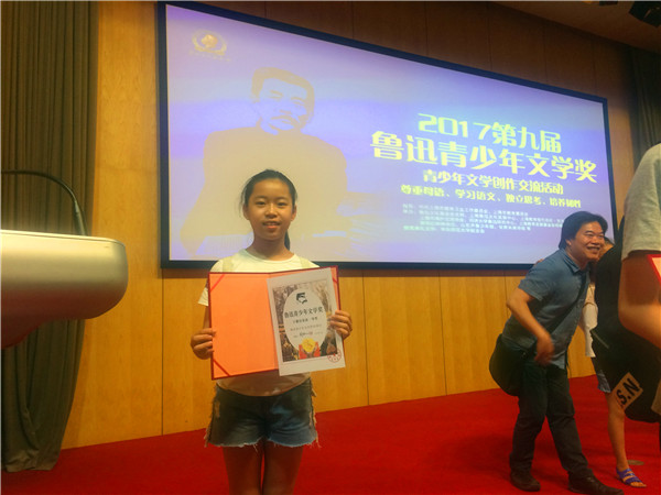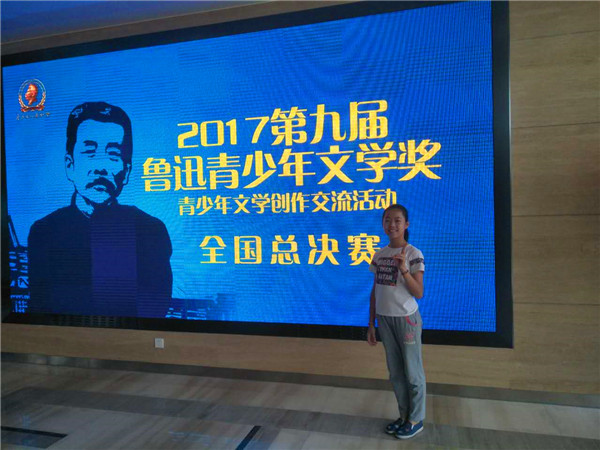 7月15日,碧桂花城学校五(1)班王紫萱同学参加了在上海市教育报刊总社举办的“2017第九届鲁迅青少年文学奖”全国总决赛。同时参赛的还有来自全国各地选拔的数十名写作高手。