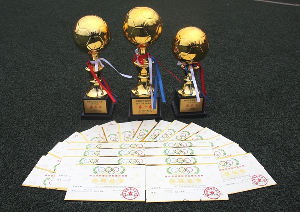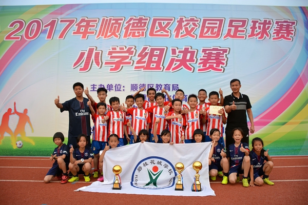在最近几年的顺德区校园足球比赛中,学校足球队获得了不少成绩:2012年获得陈村镇体育节足球联赛小学组(男子)第一名;2013年获得顺德区中小学生校园足球赛小学联赛男子组第七名;2015年—2017年获得顺德区校园足球赛(陈村赛区)小学男子丁组三连冠; 2016年获得顺德区校园足球赛男子丁组第一名;2017年获得顺德区校园足球赛男子丙组第二名;同时校女子足球队获得2015年顺德区校园足球赛(陈村赛区)小学女子组第三名;2016年获得顺德区校园足球赛(陈村赛区)小学女子组第一名; 2017年获得顺德区校园足球赛女子丁组第三名;另外,男子丁组在2017年顺德区校园足球赛足球技术测评中荣获团体全区第一名。我校梁德谦同学在个人足球技术测评中获得全区第一名。