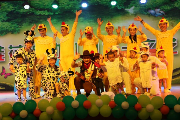 大家知道农场里有什么动物吗?精彩的开场舞之后,年龄最小的国际小小班小朋友打响第一炮,带来了亲子英文歌曲表演:Old MacDonald had a farm。