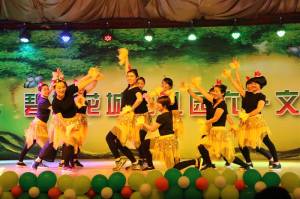 多才多艺的老师们也来给孩子们送祝福啦!中外一家亲,大家衣着中国传统服饰,用美丽的肢体舞动着青春,送上一曲水花四溅的“水鼓舞”。