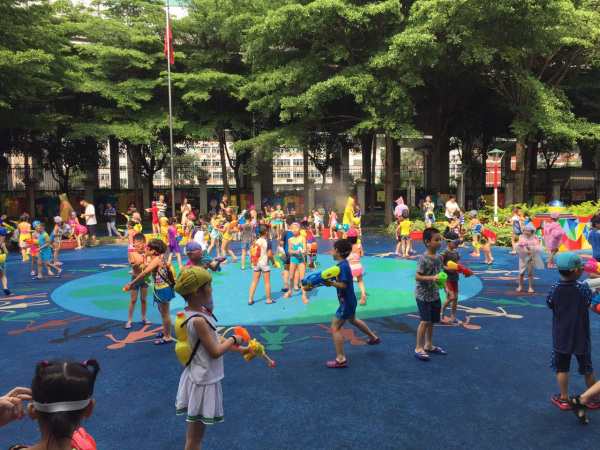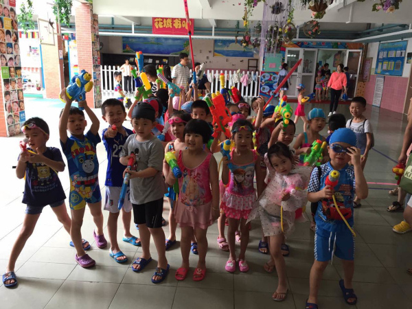 下午,太阳当空照,正是适合打水仗的时候!在介绍完游戏规则后,孩子们拿着爸爸妈妈准备好的水枪寻找自己的“对手”,一场大战拉开了帷幕。活动中,老师和家长以游戏玩伴的角色加入其中,其乐融融,大家你追我赶,校园里顿时一片欢声笑语。