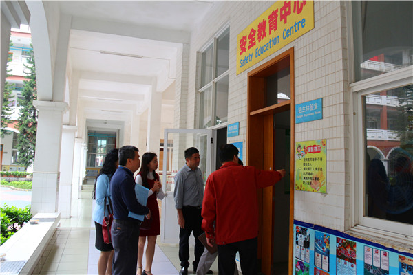 上午10时,在我校贺校长、德育处赵主任、教学处吉主任等行政人员的陪同下,领导们参观了校园环境以及各功能场室。他们在充分肯定了我校校园环境优美舒适、硬件设施配备齐全的同时,高度赞扬我校独具特色的“安全体验中心”。