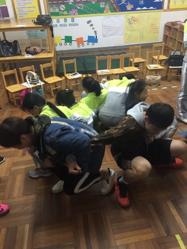 吴春雨主任为老师们带了一场别开生面的室内拓展训练。培训活动主要以游戏的方式来进行。游戏一是信任背摔,每个队员都要笔直地从平台上向后倒下,而其他队员则伸出双手来保护他;游戏二是成员之间背靠背站起来。两个游戏的主要目的都是告诉大家,作为一个团队,成员之间应该互相信任,相信他人才能获得他人的信任。