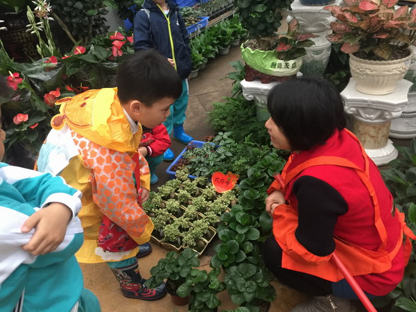 进去超市我们首先是让店主给我们介绍一下常见的阴生植物和水养植物名字和养护方法。听了这些介绍后,孩子们都竖起大拇指说“真神奇啊”。活动最后幼儿就挑选自己喜欢的植物,体验了一次自主购买的乐趣。