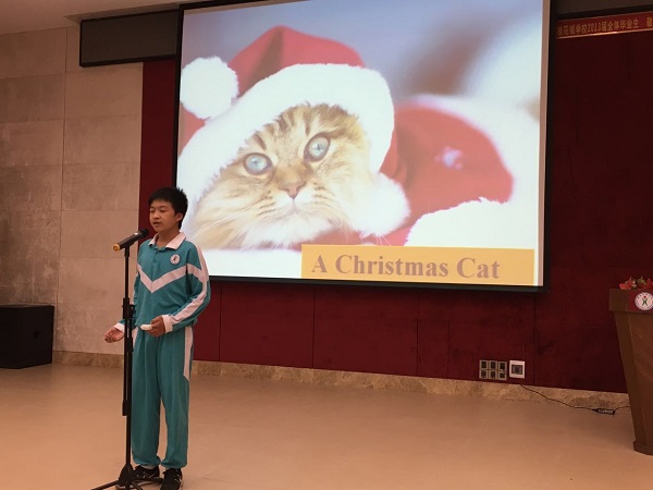 12月22日下午,为了庆祝圣诞节,提高学生学习英语的热情,初中部举办了“迎圣诞”英语演讲比赛。本次演讲比赛由曹菁菁同学和王子钊同学主持,来自三个年级的六名选手参加了比赛。