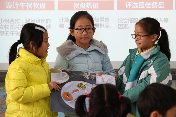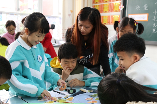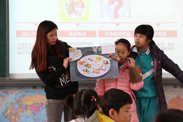 今天国际四(1)班的语文田桂花老师带领着孩子们进行了一次能量计算。Ms田先对学生知道的关于食物金字塔的认识进行了调查,很自然的将食物和能量的关系过渡到本节课所要探究的UOI能量主题内容,接着通过形象的视频和一系列的数据对孩子们进行深入浅出的引导,孩子们通过比较和思考知道了能量摄入的标准。看到同学们对能量摄入和健康饮食有了清楚的认识之后,鼓励孩子们自己设计一顿健康的午餐。Ms田抓住小组合作学习的契机,强调合作小组内的分工协作,并有效表达,促使每个学生充分思考,获取知识,形成能力。短短的一节课,孩子们思考(能量摄入的标准如何)、行动(设计一顿健康的午餐)、反思(如何有效平衡营养、搭配和能量摄入),不但让不同层次的学生各尽所能,完成学习任务,而且在知识、能力、情感、态度等方面均得到不同程度的发展。