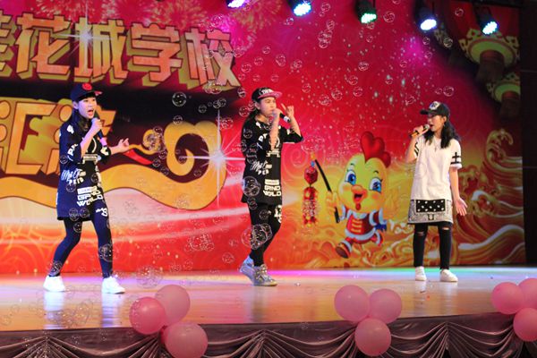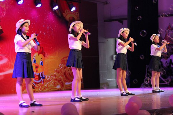本次元旦庆祝活动在一片欢腾的“龙狮贺岁”中拉开了帷幕。首先由贺校长亲切致辞,他对花城学校过去一年所取得的成绩进行了总结,并代表学校向全体师生、家长致以亲切的问候,送上了诚挚而美好的祝愿。紧接着就是学生们的精彩表演。在主持人热情洋溢的解说下,歌曲节目《自由飞翔》《中国话》《蝴蝶泉边》,舞蹈节目《箱子里的梦》《草原我们的家》,相声《读万卷书 行万里路》,情景剧节目《选秀》,英语节目《国王的新衣》、国际班《It’s a small world》,尤克里里合奏《哆啦A梦》和街舞串烧等节目悉数登场,可谓好戏连台。其中神秘嘉宾梁文君老师的出现,嗨翻全场。她本是花城学校深受孩子们喜爱的音乐老师,在参加《隐藏的歌手》第二季时获得了总决赛冠军,在自己的梦想道路上更进了一步。