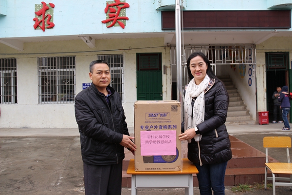 走进小学,德育处赵主任代表碧桂花城学校向江湾小学送去了义卖所得部分善款10000元现金及打印机、移动音响等教学必需品,该校包校长代表学校接受了捐赠;两位学生代表给当地同学送去了学习用品。此行,既给江湾小学送去了物质上的支持,更送去了精神上的鼓励。当地的学校领导及老师、同学对我们的到来,表达了诚挚的谢意!