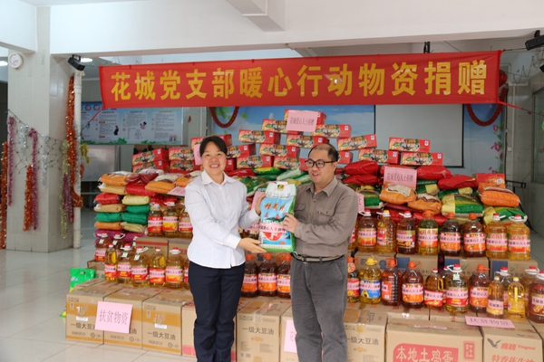 春节前夕,花城社区党支部牵头开展“和德善举,情暖万家”爱心捐赠活动,碧桂花城学校及幼儿园积极响应号召,捐赠大米100袋,食用油100桶,物资总价10952元,为陈村镇内有需要的家庭送上暖心的问候。