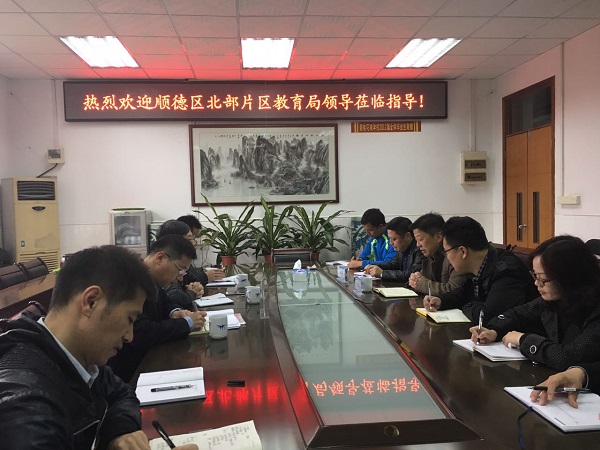 2017年2月28日,顺德北部片区教育局冯荣雄副局长、叶鑫荣老师、蒋方勇老师一行三人来到碧桂花城学校进行中考备考调研活动。
