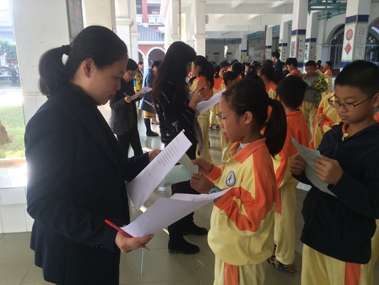 2016年12月2日下午,五年级同学盼望已久的“英语角”活动如约而至,美丽整洁的碧桂花城一楼大厅人声鼎沸,热闹非凡。各班同学整齐有序地站好队列,分好小组,各个摩拳擦掌,期待着与各位英语老师面对面地沟通与交流。老师们笑容可掬,和蔼可亲地与孩子们一起探讨着问题,师生们时而口若悬河,时而发出会心的笑声,冬日的校园里弥漫着温馨和谐的氛围……