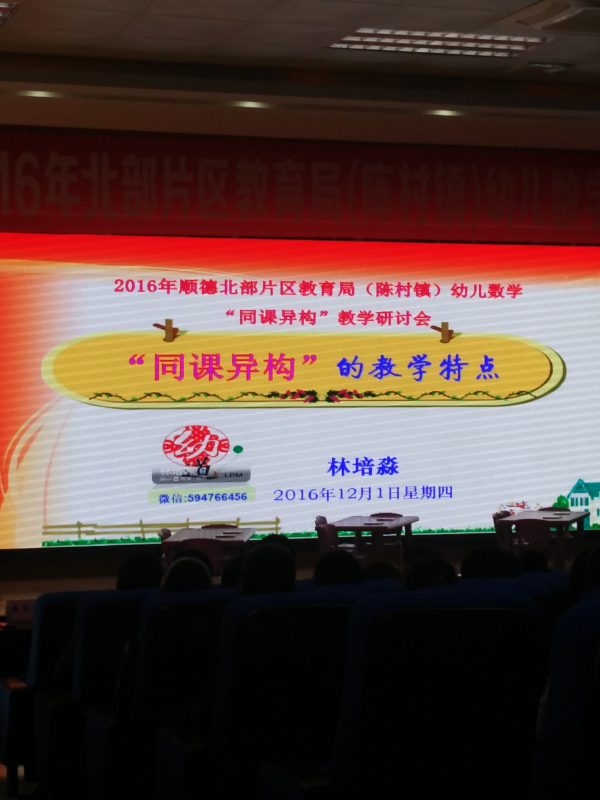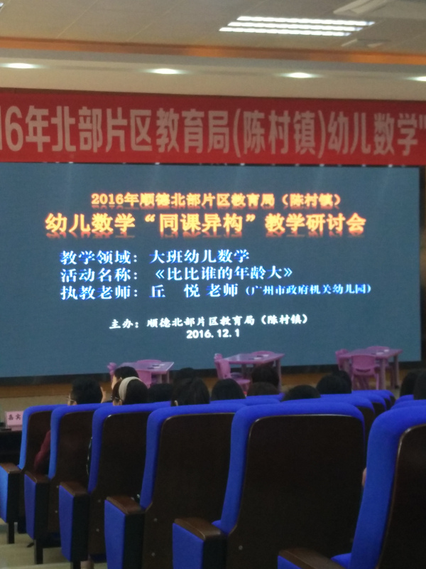 为了更好地促进数学教育实践的创新,提升教师的数学教研能力,2016年12月1日顺德北部片区(陈村镇)在陈村职业中学开展了幼儿数学“同课异构”教学研讨会。
