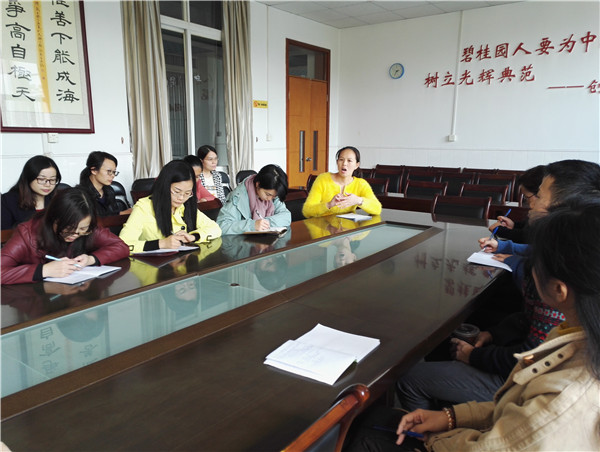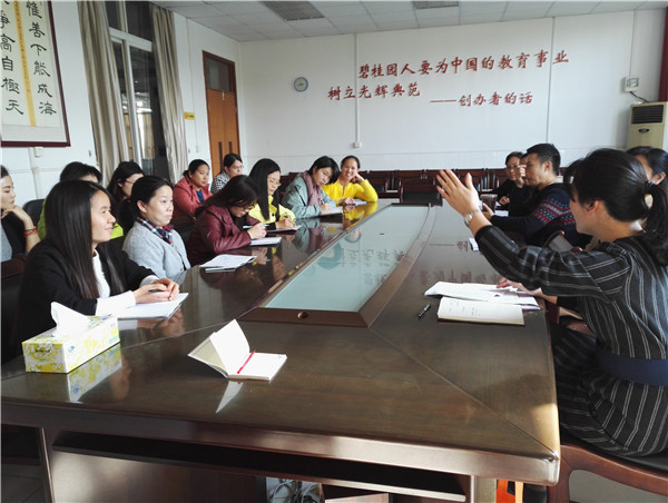 12月1日下午,碧桂花城学校英语组举行了一次别开生面的集体教研活动暨教师外出学习分享交流会。全校英语教师汇聚一堂,聆听外出学习的老师们与大家分享最新的教育理念、教育信息。 外出学习的教师分别从课堂观察,校园人文环境以及课外阅读三个方面向大家全方位地展示了学习所得,她们生动的讲解、精彩的再现让老师们忍俊不禁,让大家感受到做一位智慧、勤于思考的仁师是一件多么快乐而幸福的事!随后,郭胜丹主任以“回归课堂本质,关注学生成长”为题与大家进行了分享。老师们的智慧碰撞,在会场上不断激起阵阵的掌声和会意的笑声。