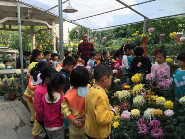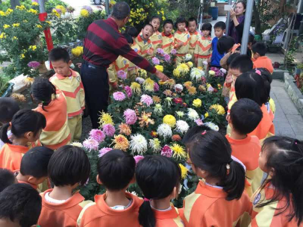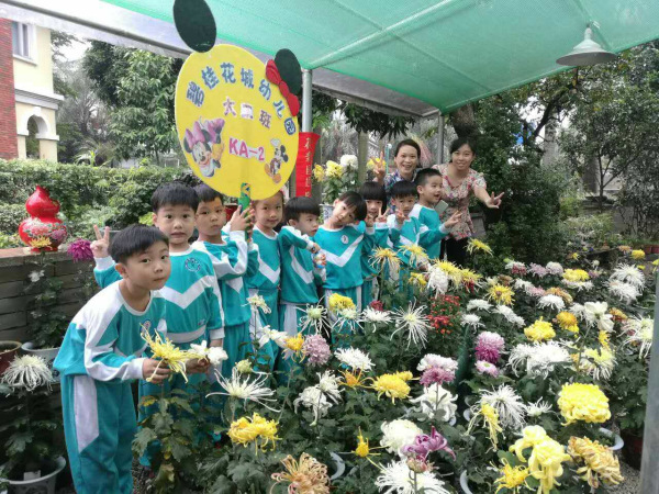 2016年12月6日,碧桂花城幼儿园大班年级组结合本学期主题活动“缤纷花市”中的《菊花》课程,全体师生到大二班梁可可小朋友家进行赏菊活动。