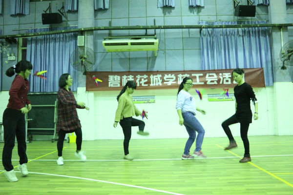 为了丰富教职工的业余生活,提高教职工的身体素质,增强教职工团结协作的意识,引导广大教职工快乐工作,健康生活,2016年12月6日晚,碧桂花城学校工会举行体育活动之呼拉圈和毽球比赛,比赛现场欢乐一片。