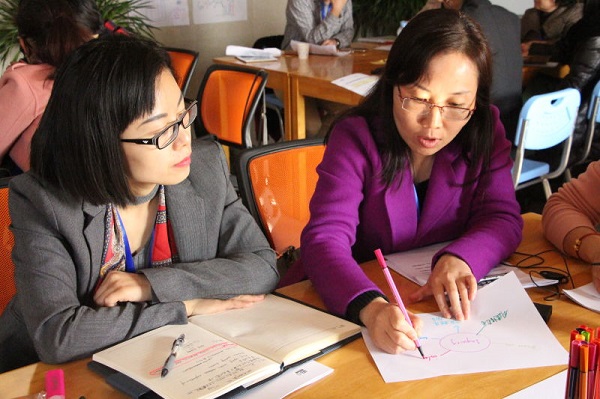 由于此次培训主题是IB探究式教学,故具有国际教育基础的碧桂园十里银滩学校作为了培训基地。培训第一天就是参观十里银滩学校校园文化建设和课堂观摩。参观完之后玛乔丽博士以观后感为切入点,开始了探究之旅。两天时间分别开展了何为真正的探究;探究式教学模式;在探究式教学过程中教师,学生和环境的角色和功能;如何在探究的过程中植入技能和运用科技等等。在讲授过程中,玛乔丽导师将我们培训人员进行分组,通过讨论,探究,分享,反思的教学模式传授她的IB理念,讲练结合,让参会人员受益匪浅。