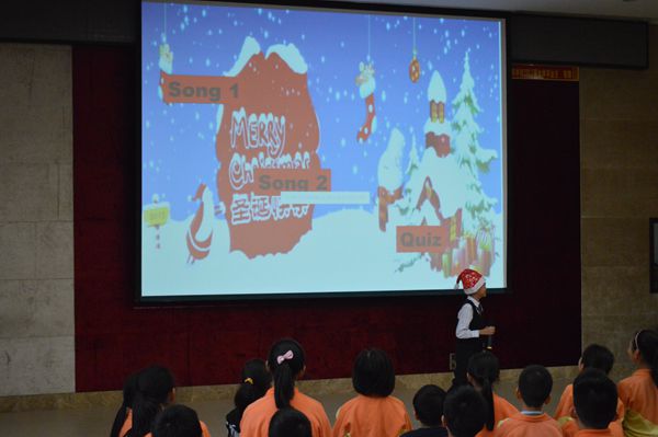 为了迎接圣诞节,本周我校五,六年级全体学生在英语老师的精心准备下在学术报告厅里隆重举行了圣诞活动派对。五年级全体学生欢乐地合唱圣诞歌曲“Santa Claus is coming to town”后,紧接着,再到六年级合唱又一首圣诞歌曲。欢乐祥和的节日气氛充满了整个学术报告厅。 当唱响着耳熟能详的节日歌曲时,更使得学生能在期末紧张的复习期间得到放松。