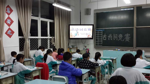 新的《语文课程标准》将诵读古诗词列为一项重要内容:要求小学阶段的学生能够熟练背诵一定篇目的古代诗词。我校多年以来一直就非常重视学生古诗词的背诵与积累,为了更好地推动与传承悠久灿烂文化,本学期,我们五年级在背诵古诗词的基础上,于11月10日晚上进行了五年级古诗词默写大赛。