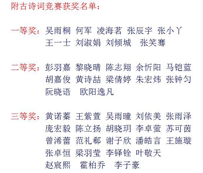 我们从《小学生必备古诗70首》中选择其中的30首进行检测,还拓展了课外经典诗句。通过开展古诗词的背诵、默写活动,不仅使中华民族的文化遗产得以广泛传播,而且使学生在活动中提高了语文综合素养。我们将在以后的教育教学工作中,继续深入地开展这项活动,让“古诗词”这一华夏精髓真正沁入每个孩子的心田。