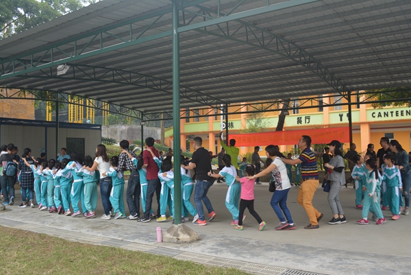 上午9时许,活动开始。教练领着我们来到一个宽阔的操场上,把我们全班同学和家长分成6个小队进行活动,分别是“飞虎队”“猎人队”“学神队”“必胜队”“雷神突击队”“黄莺队”。经过一上午的分工合作,我们顺利完成了“罗马炮台”、“一圈到底”、“一柱擎天”等游戏。场上,呐喊声、欢呼声、加油声声声入耳,把亲子活动推向了高潮,让你我为之动容!