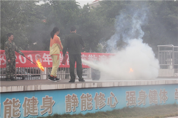 演习之后,陈村消防中队的区警官对这次活动进行了点评,并做了有关消防讲座。他给大家普及了日常生活中的一些防火灭火知识,如何正确地在火灾中冷静、果断地逃生,通俗易懂。他现场亲自指导老师和同学正确使用灭火器,让全体师生初步掌握了火灾发生时逃生的基本技能。