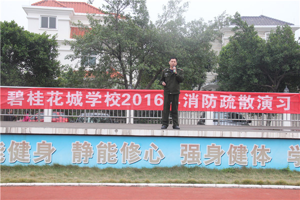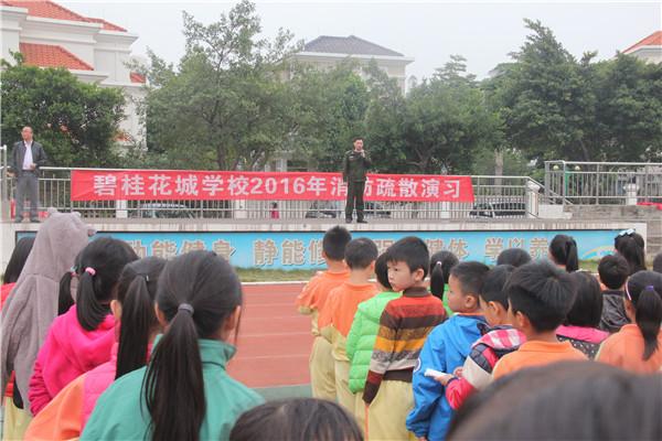 2016年11月11日下午,碧桂花城学校全体师生在教室里严阵以待,一年一度的消防疏散演习即将开始。