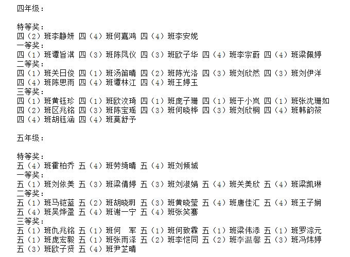 为了丰富同学们的校园生活,培养同学们的审美情操,锻炼同学们的电脑绘画技巧,陶冶同学们团结友爱、热爱学校的高尚情操,我校举办了以“校园生活”为主题的四、五年级电脑绘画竞赛。经过三周时间的作画、修改和评比,竞赛于本周圆满结束。热烈祝贺以下同学在本次竞赛中获得优秀成绩: