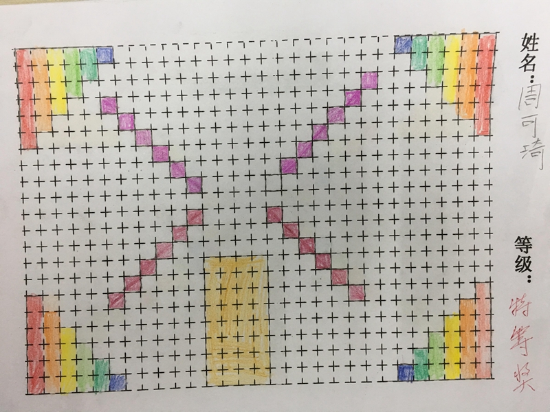 11月22日,三年级学生齐聚学术报告厅,进行了一场“画周长”的数学竞赛。学生们根据要求画出周长是24的图形,并为其增添色彩。他们发挥创造与想象,画出各种不同形状的图形,有长方形、正方形、楼梯形状、字母形状等等,还利用这些元素对版面进行精心设计,勾画出一幅幅精美的作品。他们用画画勾画数学,用数学创新思维,展现数学的美。