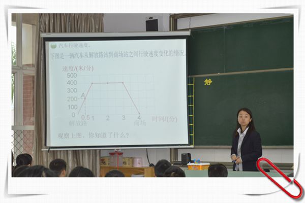 张灵老师上的《看图找关系》一课是六年级上册数学好玩中的内容。全课以两个游戏开始,分别从听觉和视觉上对公交车运行过程这一活动进行描述,从而引出数学上有一种更简洁直观的描述方法—图表。接下来,教师把车速与时间的关系、距离与时间的关系、楼层与时间的关系等零散的图表串连起来,创设合理的情境,并让学生将图表中的信息描述出来,以提出问题、自主探索、独立思考与合作交流相结合为主要学习方式,引领学生参与对数学图表的认识,体现“数学源于生活而用于生活”的理念,落实了“促进学生主动学习、主动发展”的教学目标。在整个教学过程中,教师注重课堂结构的条理清晰,学生明白自己在学什么,能够较为投入地参与到学习中来,课堂气氛活跃,学生参与度高。课后获得家长的一致好评。