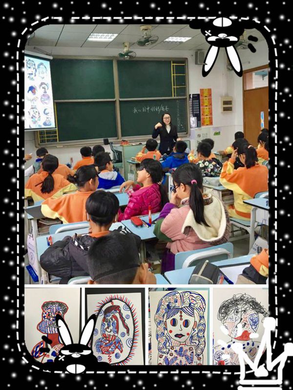 《我心目中的妈妈/爸爸》这节课首先介绍了英国画家斯蒂芬.威尔夏和法国画家让.杜布菲,接着是朦眼“一笔画”完成人物轮廓,最后运用让.杜布菲新颖的绘画方法,用蓝色、红色两种颜色彩绘制不同的点线面花纹进行装饰,完成后作品装裱好送给自己的父母。