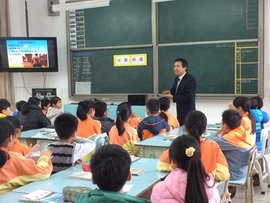 五年级王进、黄咸好、廖卫根三位语文老师上的是第六单元的口语交际《父母的爱》。老师先是从本单元的课文说起,引出父母的爱的多种内涵。接着老师用漫画的形式,带着孩子们回忆了从小到现在,父母为他们所做的点点滴滴,唤醒孩子内心的情感,激发他们的表达欲望。这时,老师适时地推出“故事分享”环节,孩子们积极地分享了生活中,父母爱自己的一个个故事,其真、其情让人动容!动物爱孩子的方式也许为我们人类提供了一些有益的借鉴,视频《鹬》让人感动,让人深省。在观看这段短视频的时候,教室极其的安静,孩子、家长、老师都沉浸在温馨、感人的画面里,相信其中的每一个人都受到了教育。