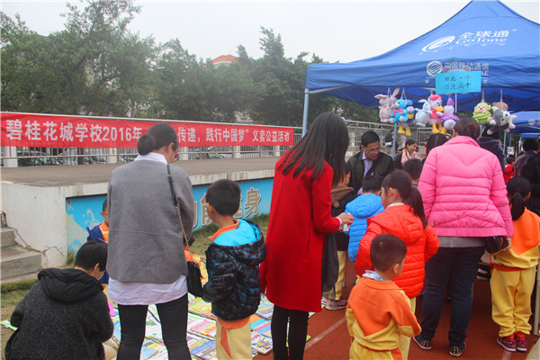 2016年11月25日,下午16:10,随着下课铃声响起,孩子们从各自的教室陆续涌向操场,碧桂花城学校爱心义卖活动开始了。