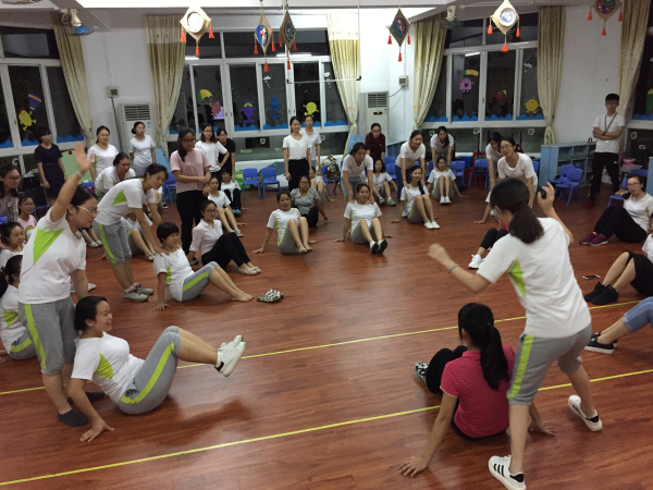 最后全体教师跟着王老师和苏老师一起动起来,学习各种趣味体育互动动作。希望本次活动能起到抛砖引玉的效果,激发老师们更多的创意,以运用于日常体育教学中。