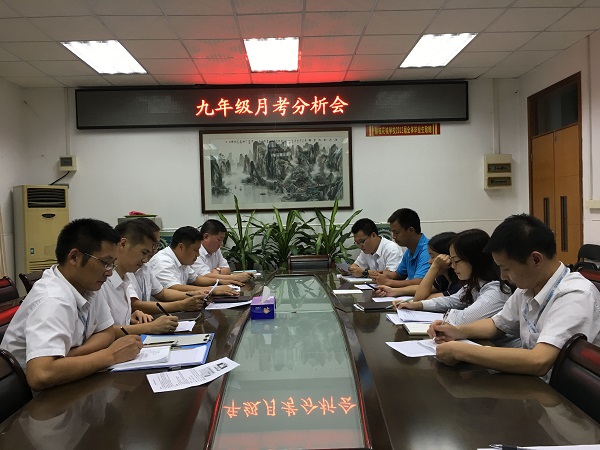 会议首先由年级组长王展鹏老师代表九年级组向谭家文副校长分析汇报了本次月考的试卷命题情况和学生的答题情况。接着,各科老师着重分析讨论了本次月考前14名同学的每一科成绩,提出针对他们的薄弱科目进行下一阶段的培优工作,进一步提升他们的综合实力是九年级今后工作的重点之一。