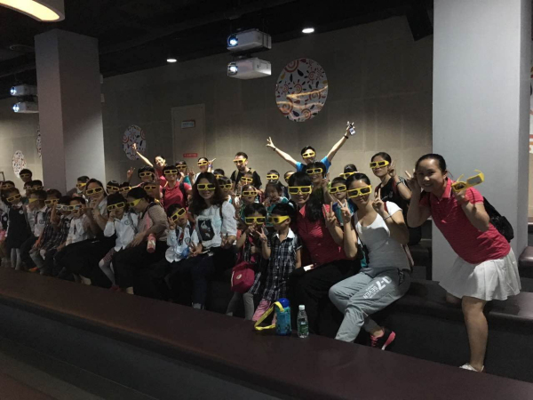 观看有趣生动的3D电影《美味向前冲》,电影以卡通的形象介绍酱油的制作工序及包装过程,孩子们乐在其中。